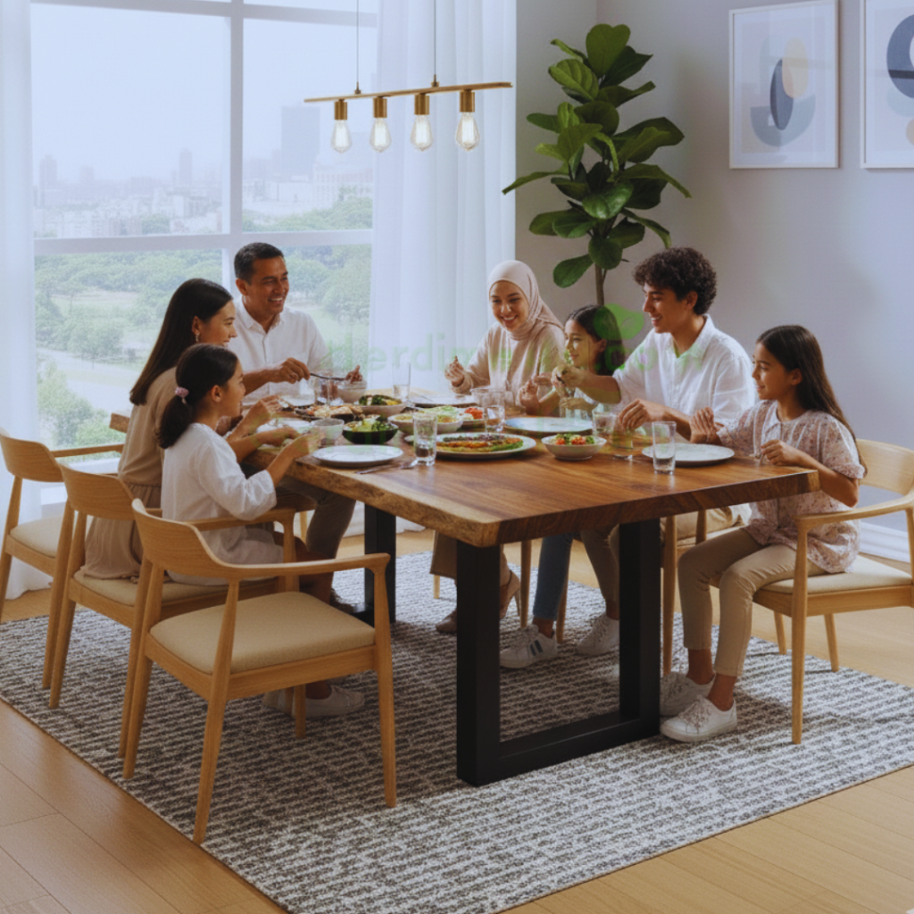 Ideal untuk makan bersama keluarga, arisan, hingga jamuan tamu. Kapasitas fleksibel dan fungsional untuk kebutuhan rumah tangga.