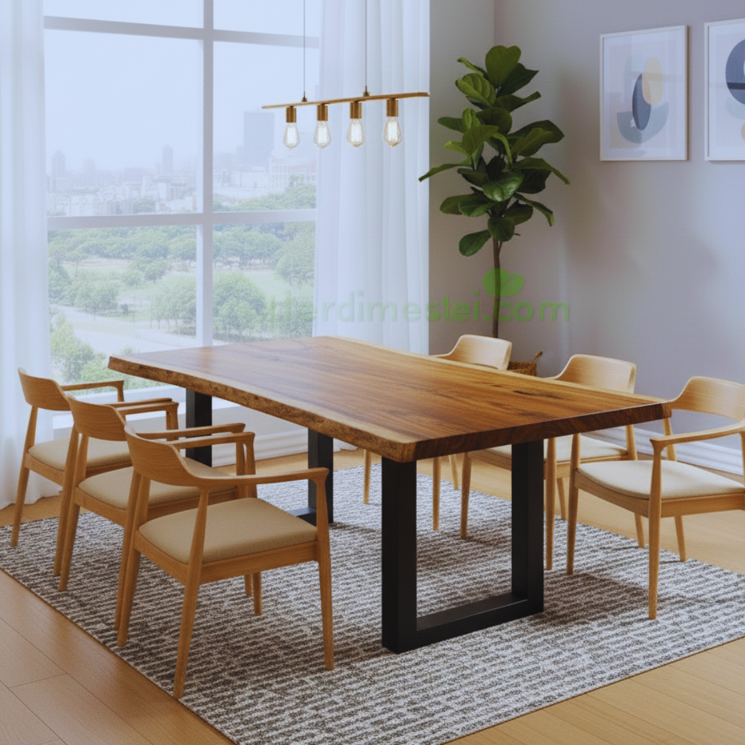 Menggunakan kayu solid pilihan dengan rangka kuat, meja makan ini tahan lama, stabil, dan tidak mudah goyah. Cocok untuk penggunaan harian jangka panjang.