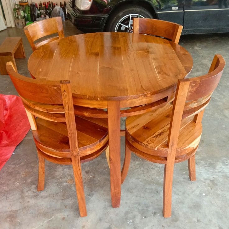 Jual Meja Makan Bulat Bundar Kayu Jati 4 Kursi Makan Set Berkualitas