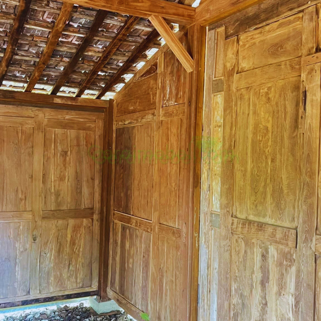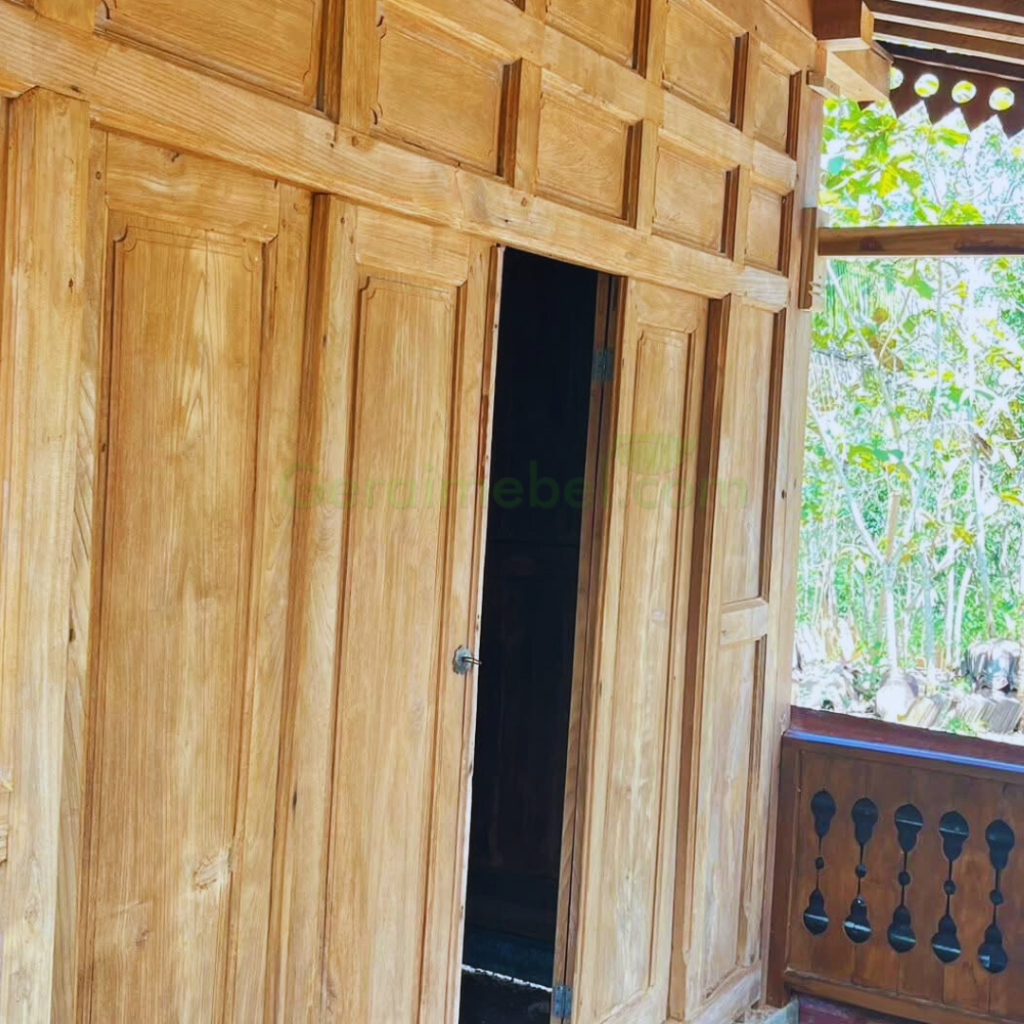 - Dinding dan tiang kayu jati solid dengan ukiran khas Jepara.