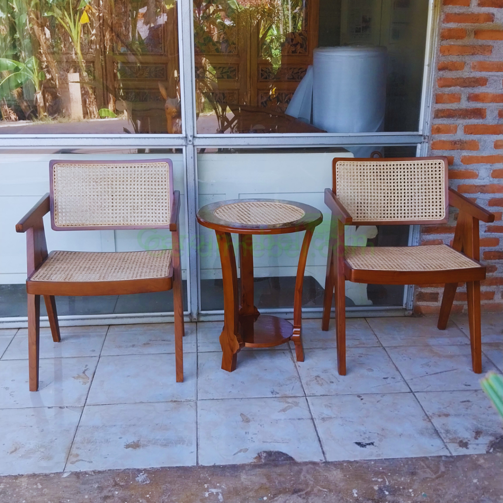 - Nama Produk: Set Kursi Teras Kayu Jati Kombinasi Rotan