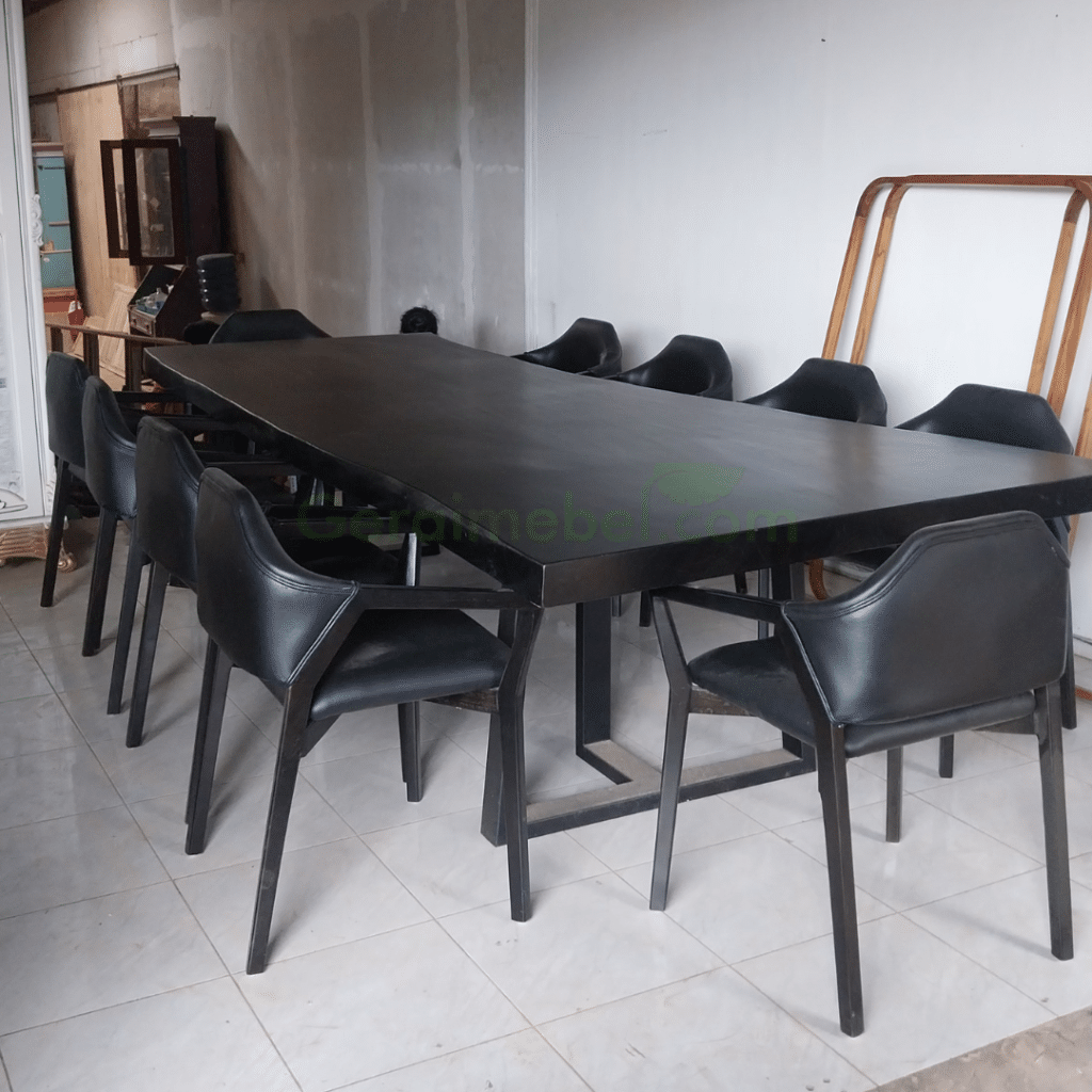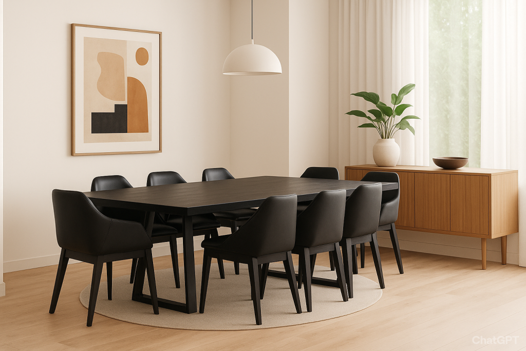Kombinasi antara meja makan kayu solid berwarna gelap dan kursi kulit hitam seperti pada gambar di atas menciptakan suasana yang modern, berwibawa, dan nyaman. Artikel ini akan membahas secara mendalam konsep desain ruang makan tersebut, mulai dari pemilihan material, tata letak, hingga tips perawatan.